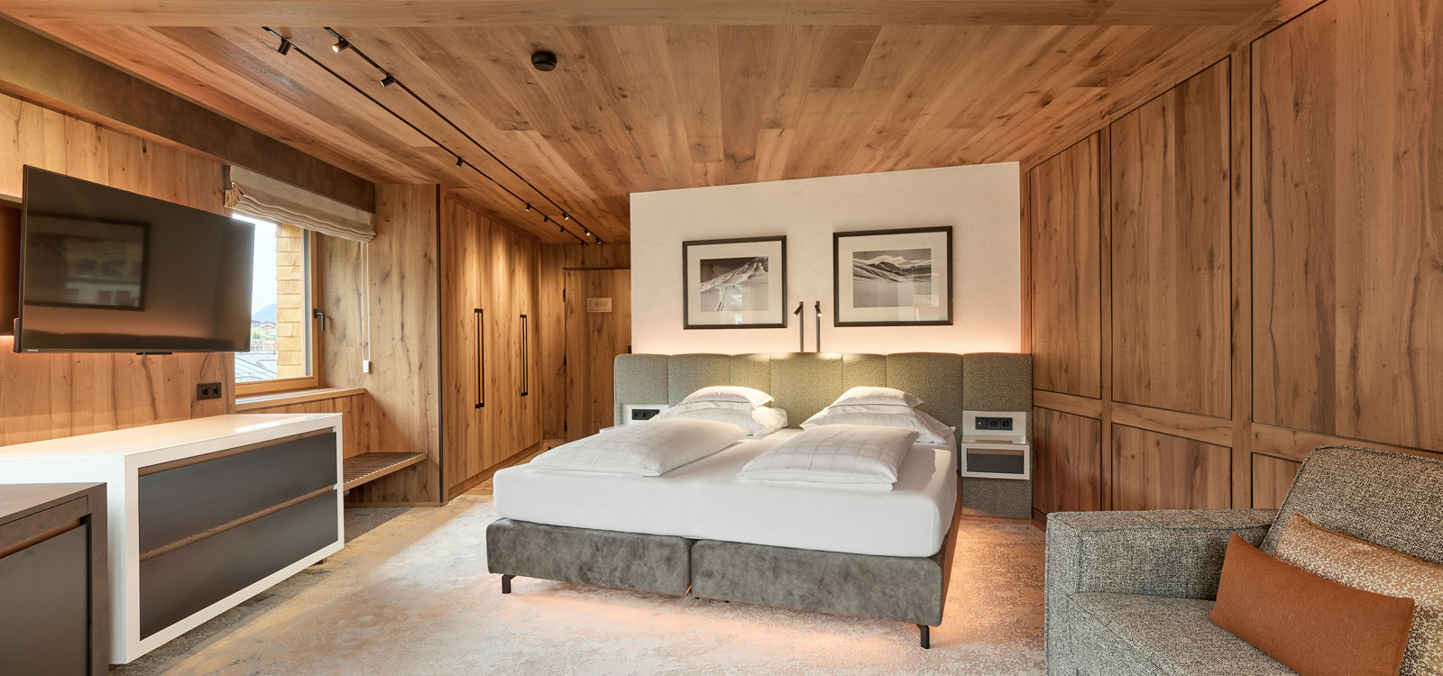 Mit moderner Eleganz und höchstem Komfort eingerichtet, schafft der trendige Stil mit viel Holz und hellen Farben eine wohlige Gemütlichkeit. Die großzügigen Zimmer und Ferienwohnungen sind auch für Ihren Familienurlaub bestens geeignet. Wenn das Hotel im Sommer für Gäste schließt, werden die Zimmer und Appartements Jahr für Jahr in Stand gehalten, so dass sie pünktlich zu Beginn der Wintersaison in neuem Glanz erstrahlen.